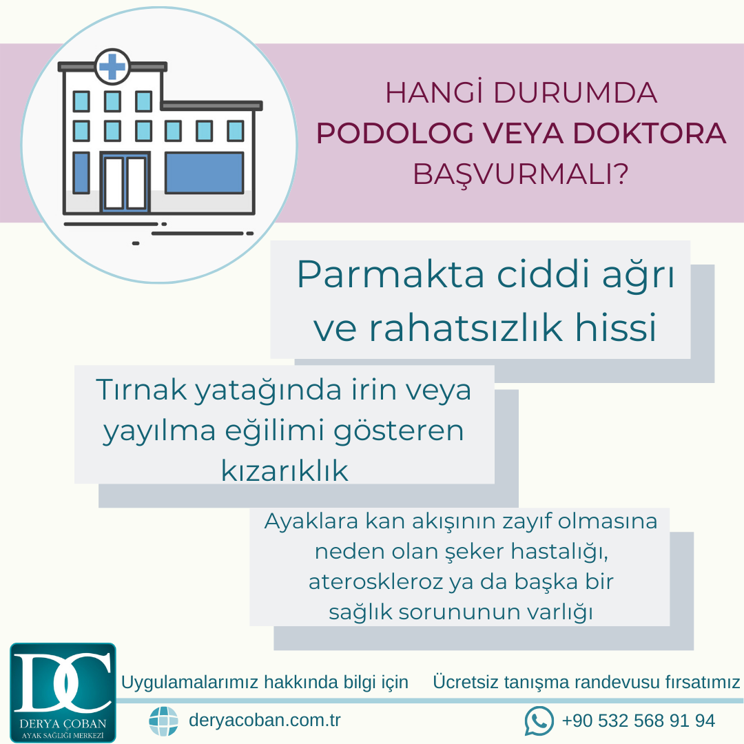 Aşağıdaki durumlarda MUTLAKA PODOLOG VEYA DOKTORA başvurun: